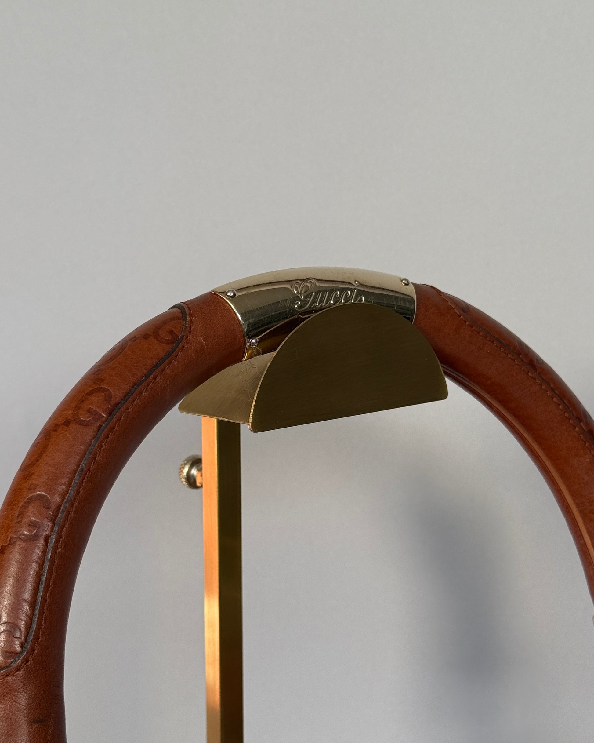 Bolso de hombro vintage de la firma italiana Gucci. El exterior se encuentra confeccionado en piel de alta calidad, acabados de piel "Guccissima" y piezas metálicas refinadas. El interior se encuentra confeccionado en forro de tela. Su diseño incluye cierre de solapa y varios compartimentos interiores.