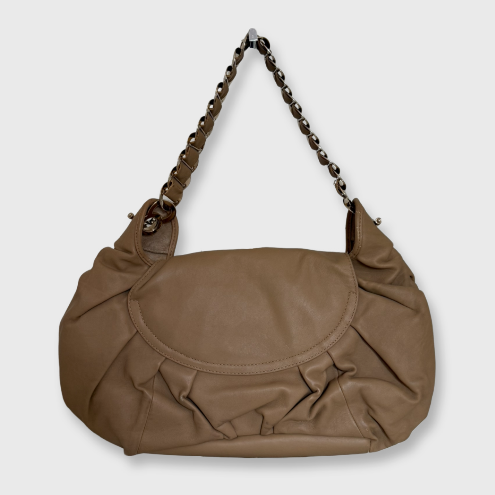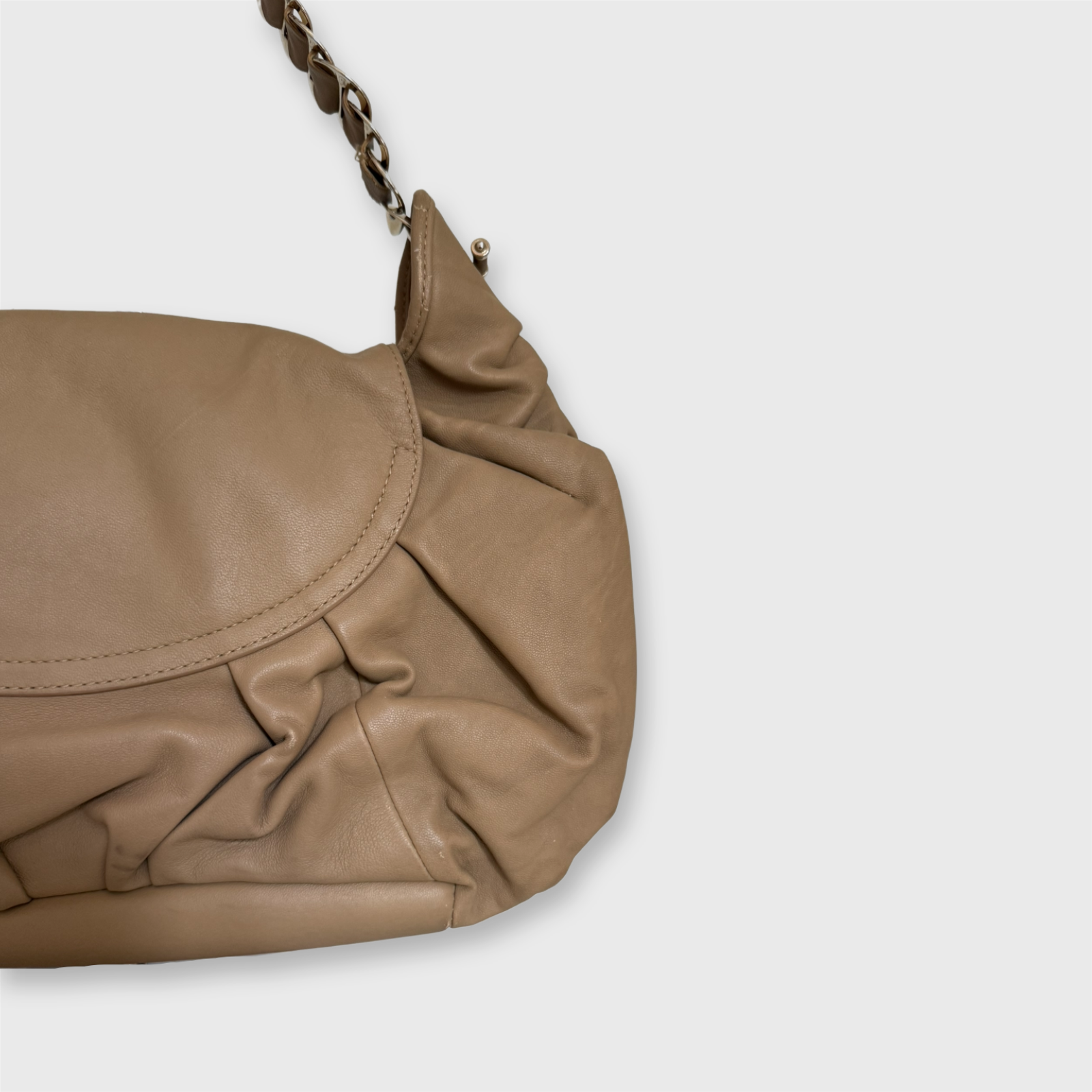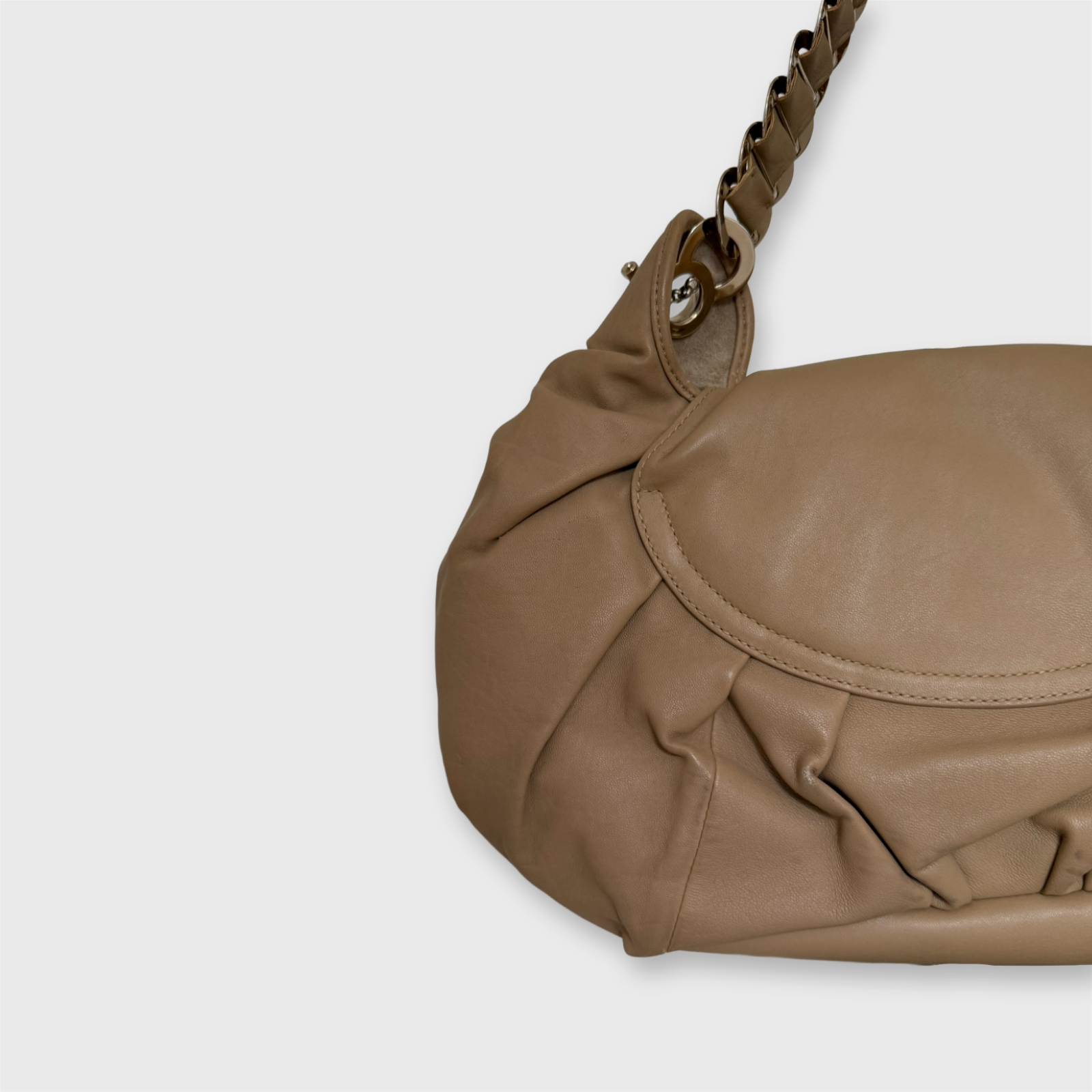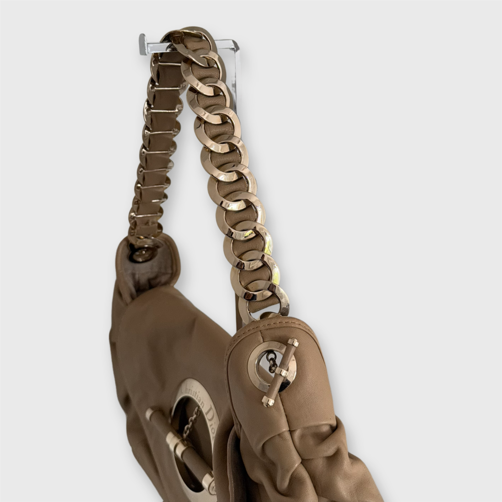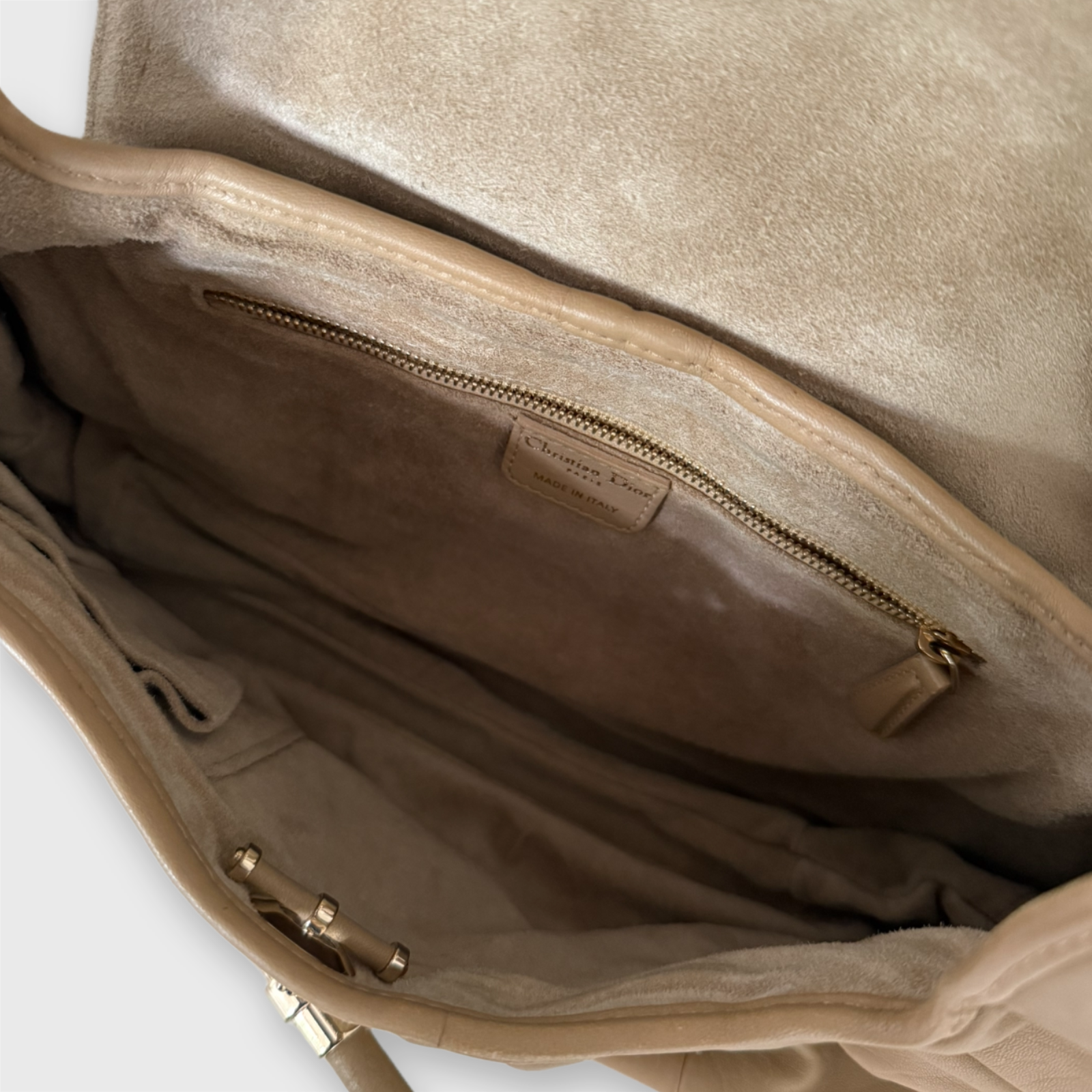 Bolso de hombro vintage de la prestigiosa firma francesa Christian Dior. El exterior se encuentra confeccionado en piel de alta calidad y piezas metálicas refinadas. El interior se encuentra confeccionado en ante. Su diseño incluye cierre de solapa y un bolsillo interior con cremallera.