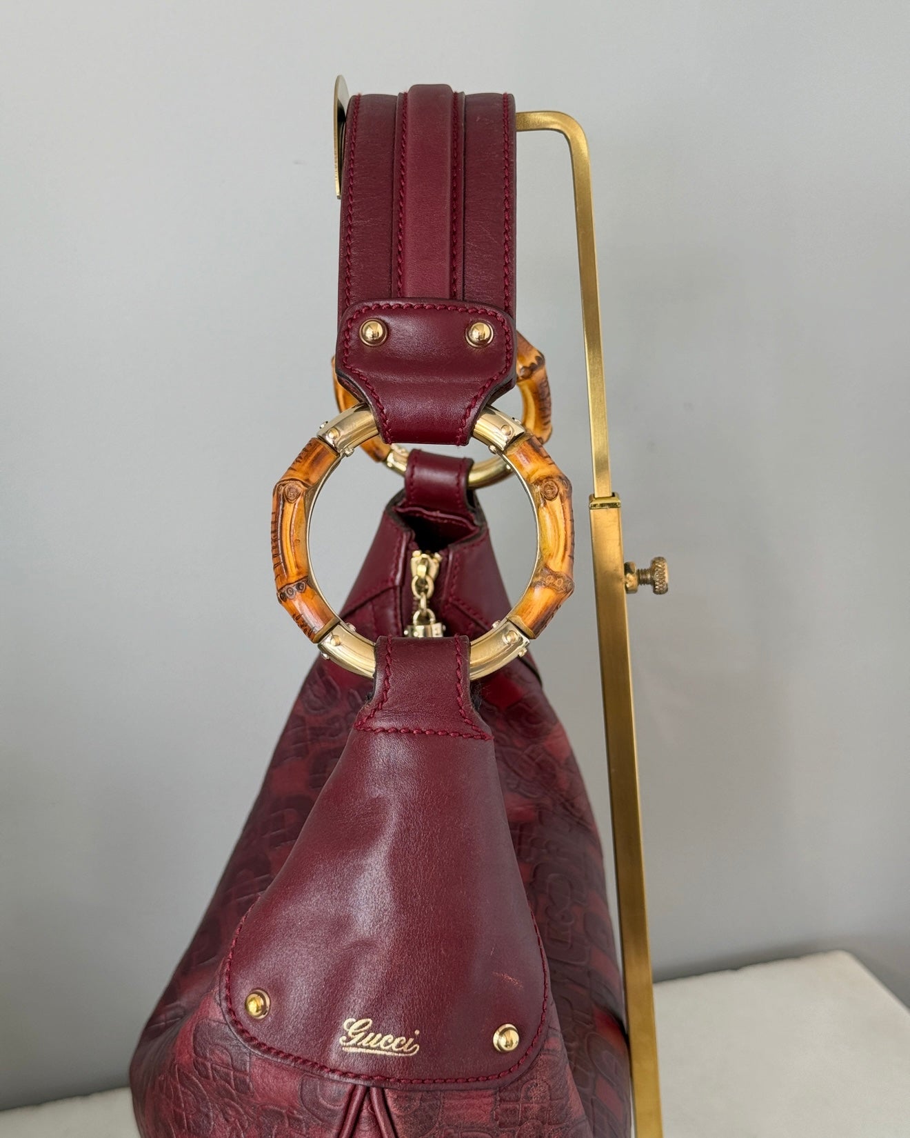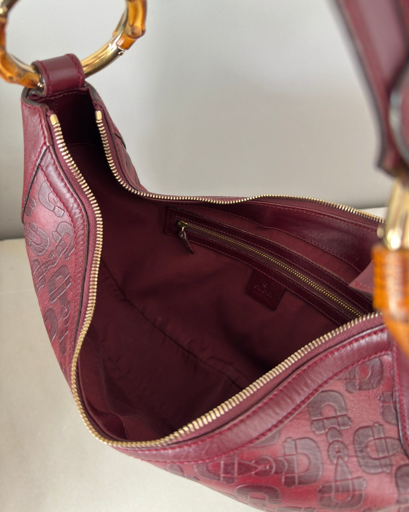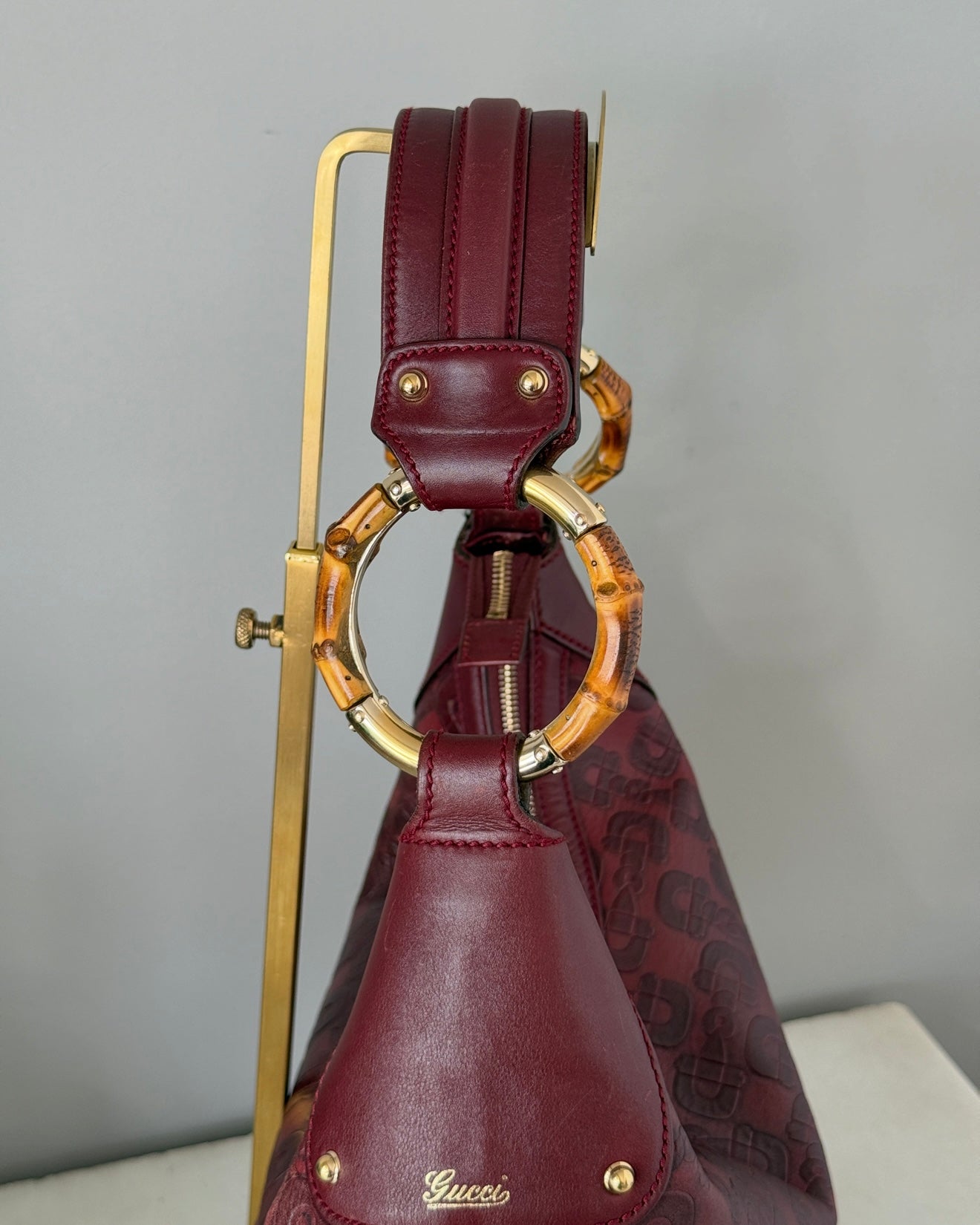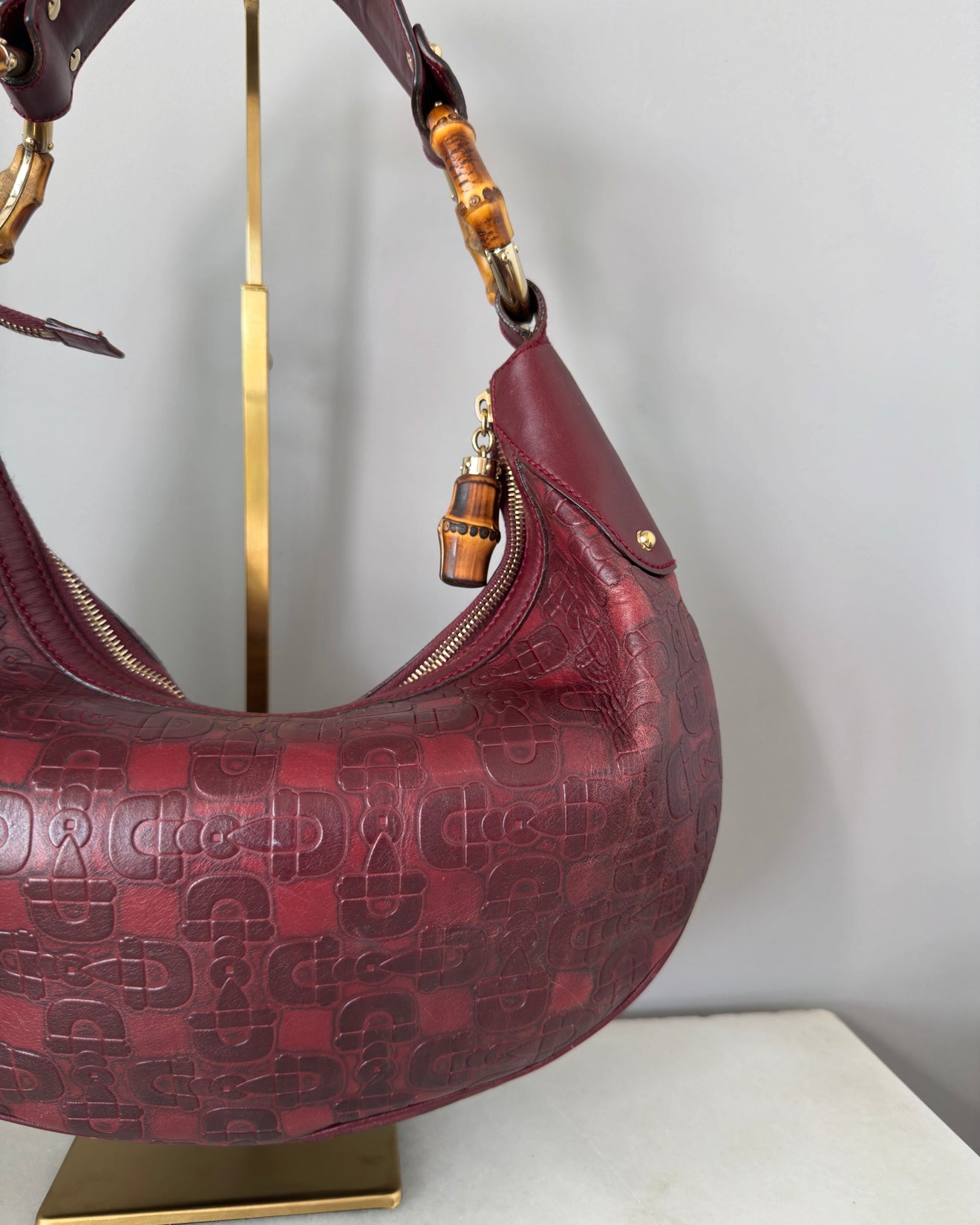 Bolso de hombro vintage de la firma italiana Gucci. El exterior se encuentra confeccionado en piel con estampados ecuestres y piezas metálicas refinadas. El interior se encuentra confeccionado en forro de tela. Su diseño incluye cierre de cremallera y un bolsillo interior con cierre de cremallera.