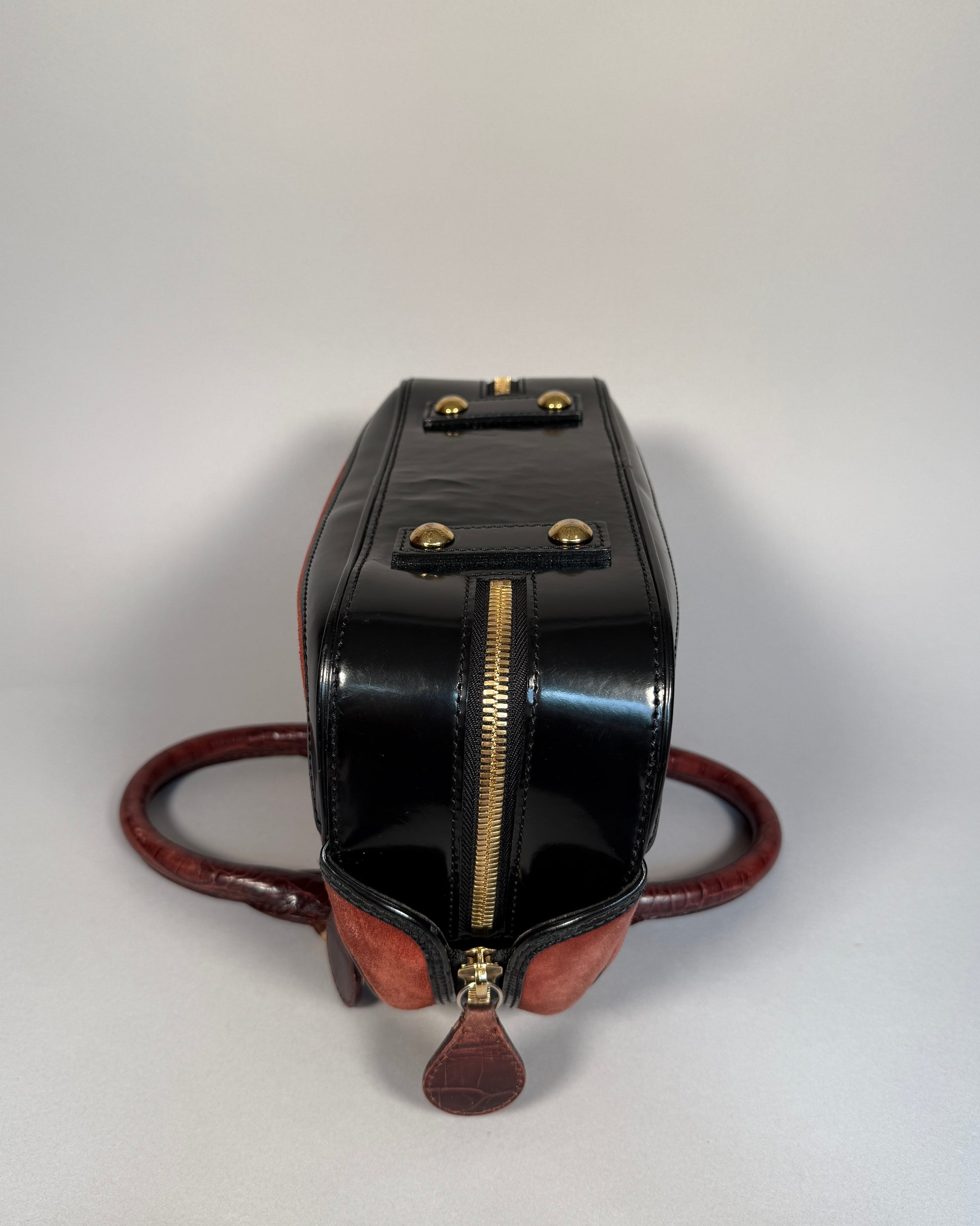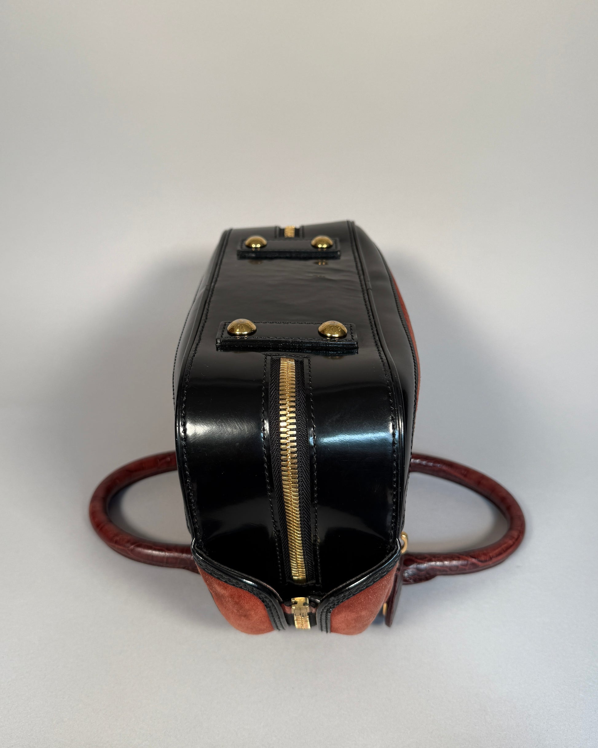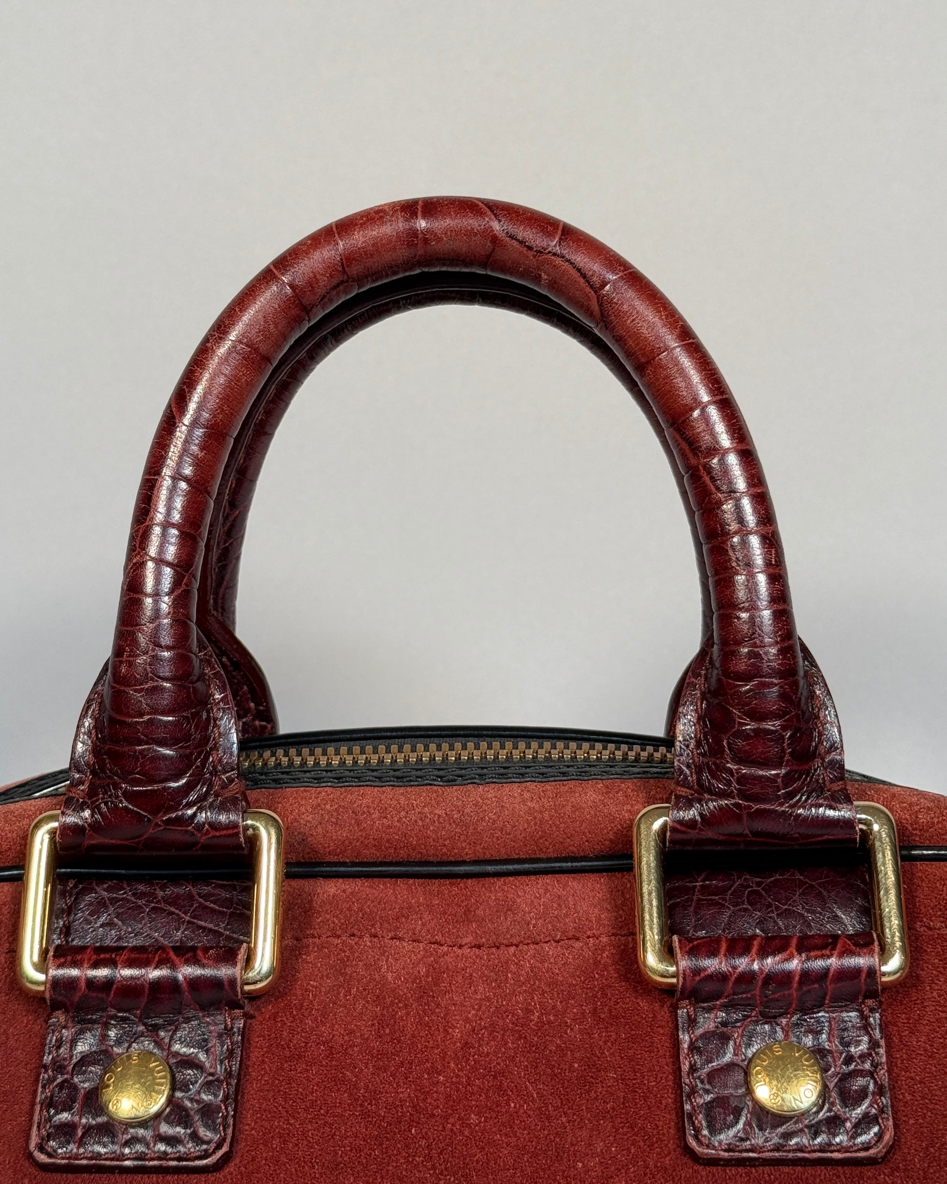 Bolso de mano vintage de la firma francesa Louis Vuitton. El exterior se encuentra confeccionado en ante (suede), piel de alta calidad y piezas metálicas refinadas. El interior se encuentra confeccionado en forro de tela. Su diseño incluye cierre de cremallera y varios compartimentos interiores y exteriores.