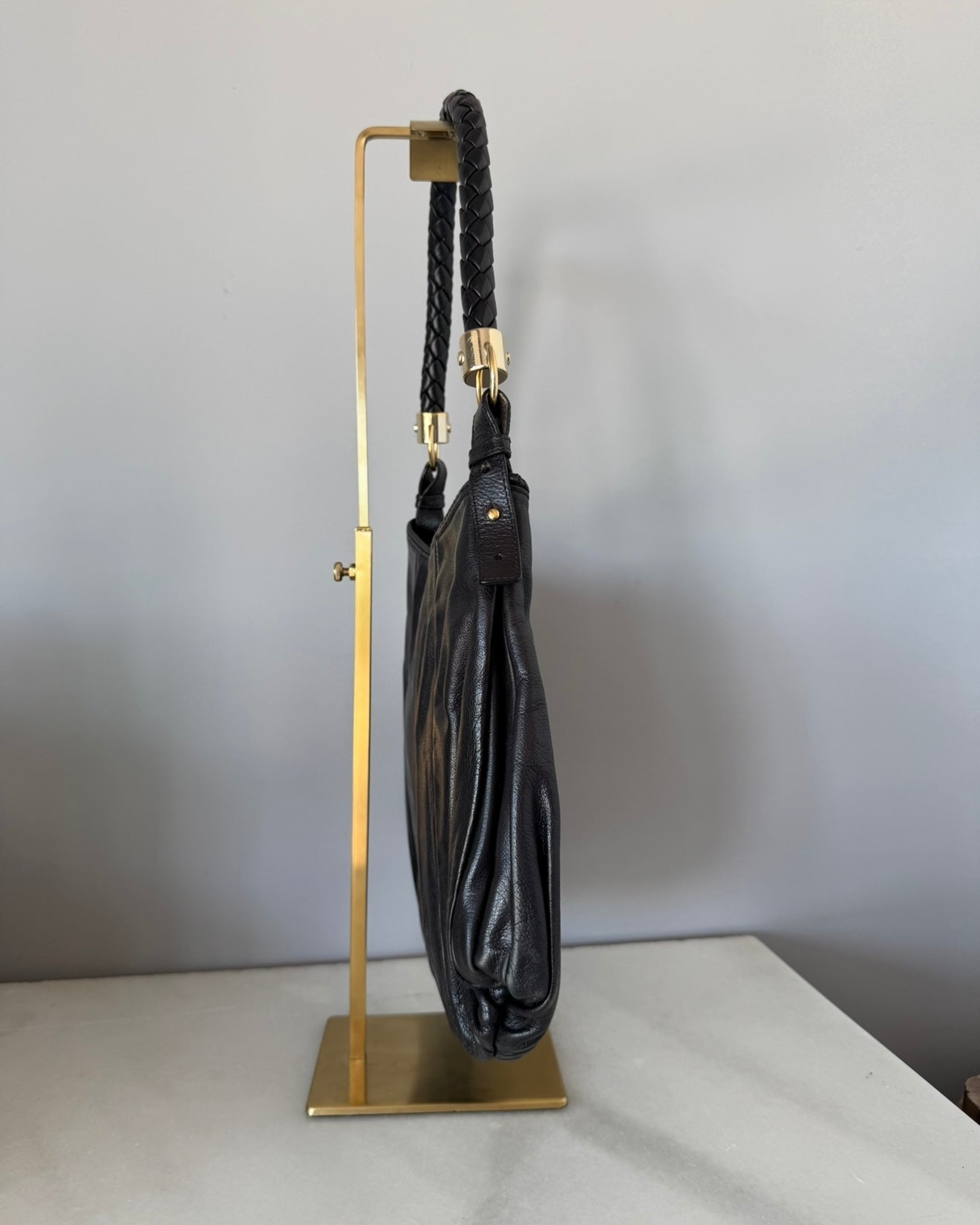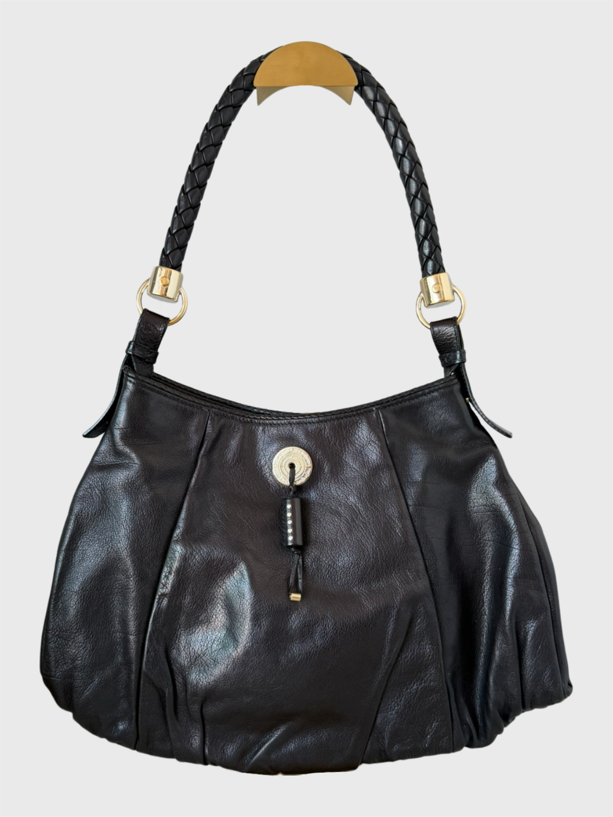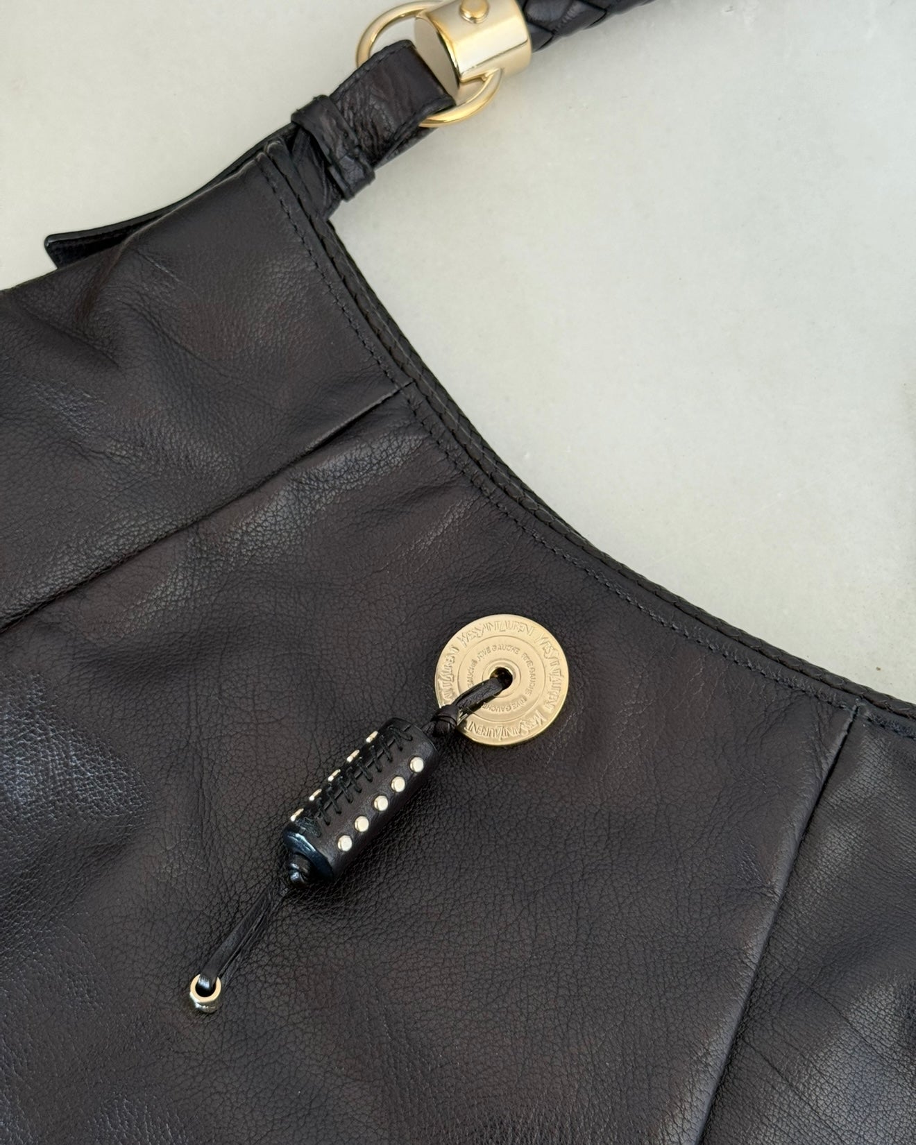 Bolso de hombro vintage de la prestigiosa firma francesa Yves Saint Laurent. Confeccionado en piel de alta calidad y detalles metálicos. El diseño incluye cierre de broche magnético y varios compartimentos interiores.
